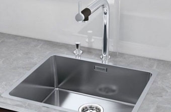 - Мойки врезные. Такой вид моек прост и надежен в плане монтажа, вода, впоследствии, не просачивается под раковину, что обеспечивает долговечность, как самой мойке, так и кухонному гарнитуру;