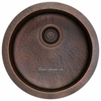 Это круглая мойка для кухни, предлагаемая в двух вариантах расцветки - светлая и состаренная медь, соответственно Supreme и Antique. Она предполагает установку под столешницей, отличается достаточно компактными размерами (диаметр 460 мм, рекомендованная ширина шкафа для встраивания - 50 см).
