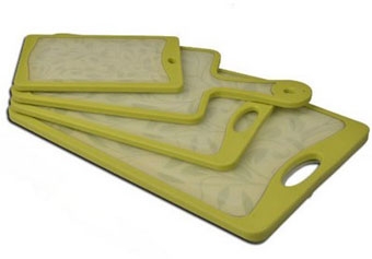 Традиционно материалами для изготовления разделочных досок являются дерево и пластик. Но на современных кухнях не так давно появились и стеклянные доски, что довольно гигиенично. Стоит заметить, что стекло здесь применяется очень прочное, на котором не стоит разве что готовить отбивные, все же остальные кухонные операции такое стекло выдержит без проблем.