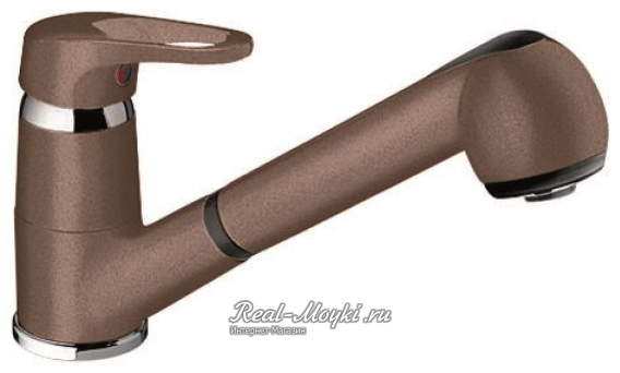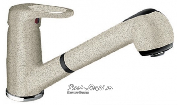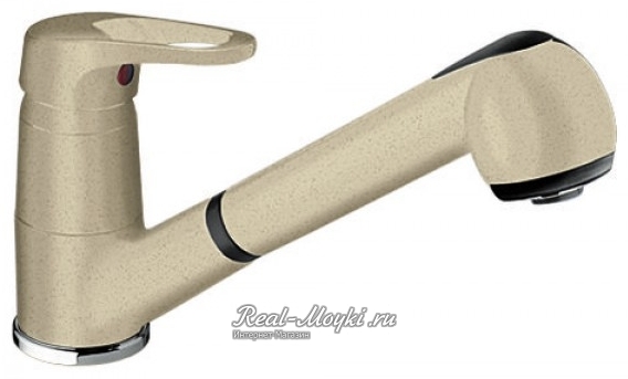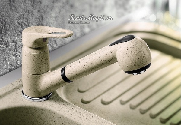 Смесители под гранит: сделаны из латуни с гальваническим цветным покрытием. Поэтому и цветовая гамма такая большая. Визуально смесители с покрытием под гранит не будут отличаться от гранитных моек, главное подобрать цвет. Такие смесители имеют всегда основной цвет и мелкие цветные вкрапления, к примеру, черный металлик – это черный смеситель с металлическими вкраплениями.
