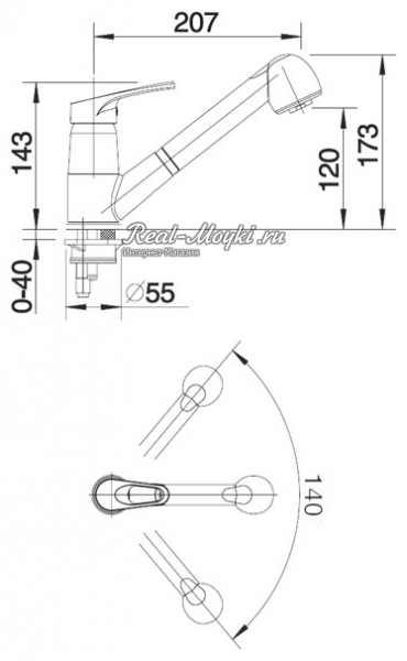 Высота излива это вертикальное расстояние между основанием смесителя и аэратором (рассекателем). При выборе высоты излива важно учитывать, что слишком низкий излив, может затруднять мытье габаритной посуды, а очень высокий излив, может вызывать разбрызгивание воды.