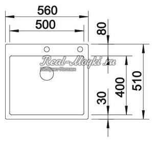 Внешний размер мойки - 800х500 мм. Размер отверстия под данную мойку - 780х480 мм.