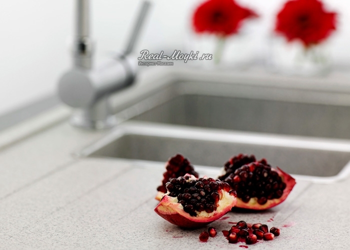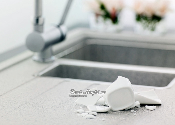 Плюсы мойки из искусственного гранита: длительный срок эксплуатации (не менее 10 лет), значительный запас прочности, гигиеническая безопасность, цветовое разнообразие, легкость восстановления поверхности при появлении дефектов (для этого достаточно потереть поврежденное место наждачной бумагой и отполировать его).