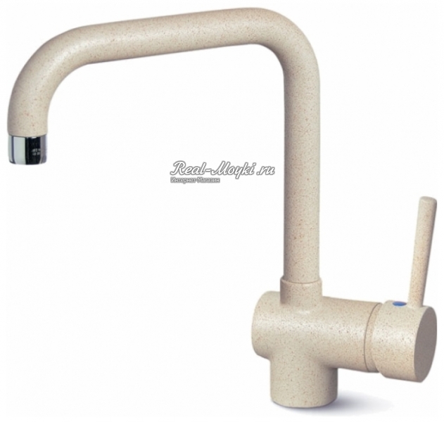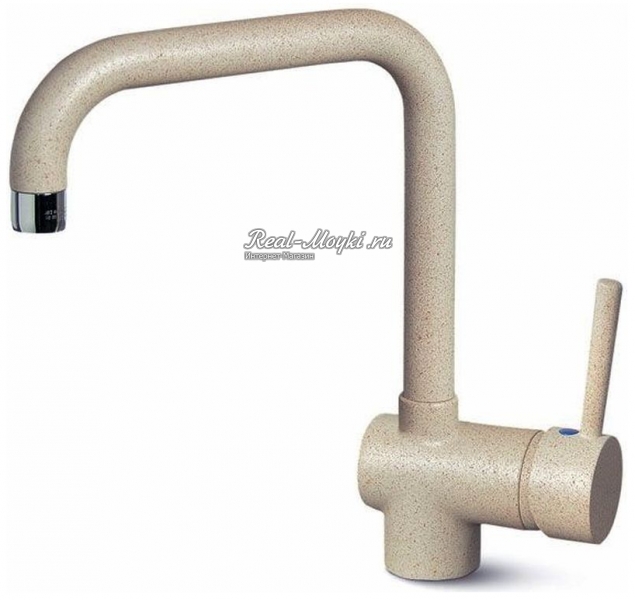 Смесители под гранит: сделаны из латуни с гальваническим цветным покрытием. Поэтому и цветовая гамма такая большая. Визуально смесители с покрытием под гранит не будут отличаться от гранитных моек, главное подобрать цвет. Такие смесители имеют всегда основной цвет и мелкие цветные вкрапления, к примеру, черный металлик – это черный смеситель с металлическими вкраплениями.