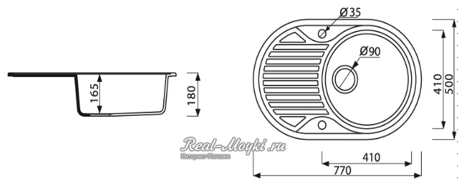 Овальные мойки - разновидность кухонных моек по форме, которая сочетает привлекательность и повышенную функциональность. Такие модели практически также компактны, как и круглые, но часто дополняются вспомогательными элементами, к примеру, крыльями, дополнительным пространством для размораживания или сушки продуктов и т.д. Такие мойки практичны, просты в уходе, но и, как правило, нуждаются в соответствующих по размеру кухонных гарнитурах.