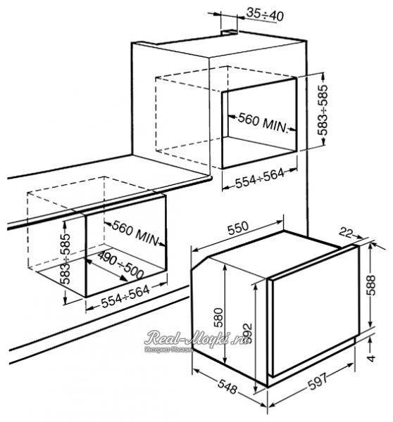 | Размеры ниши для встраивания (ВхШхГ) | 58.5 х 56.4 х 56 см |