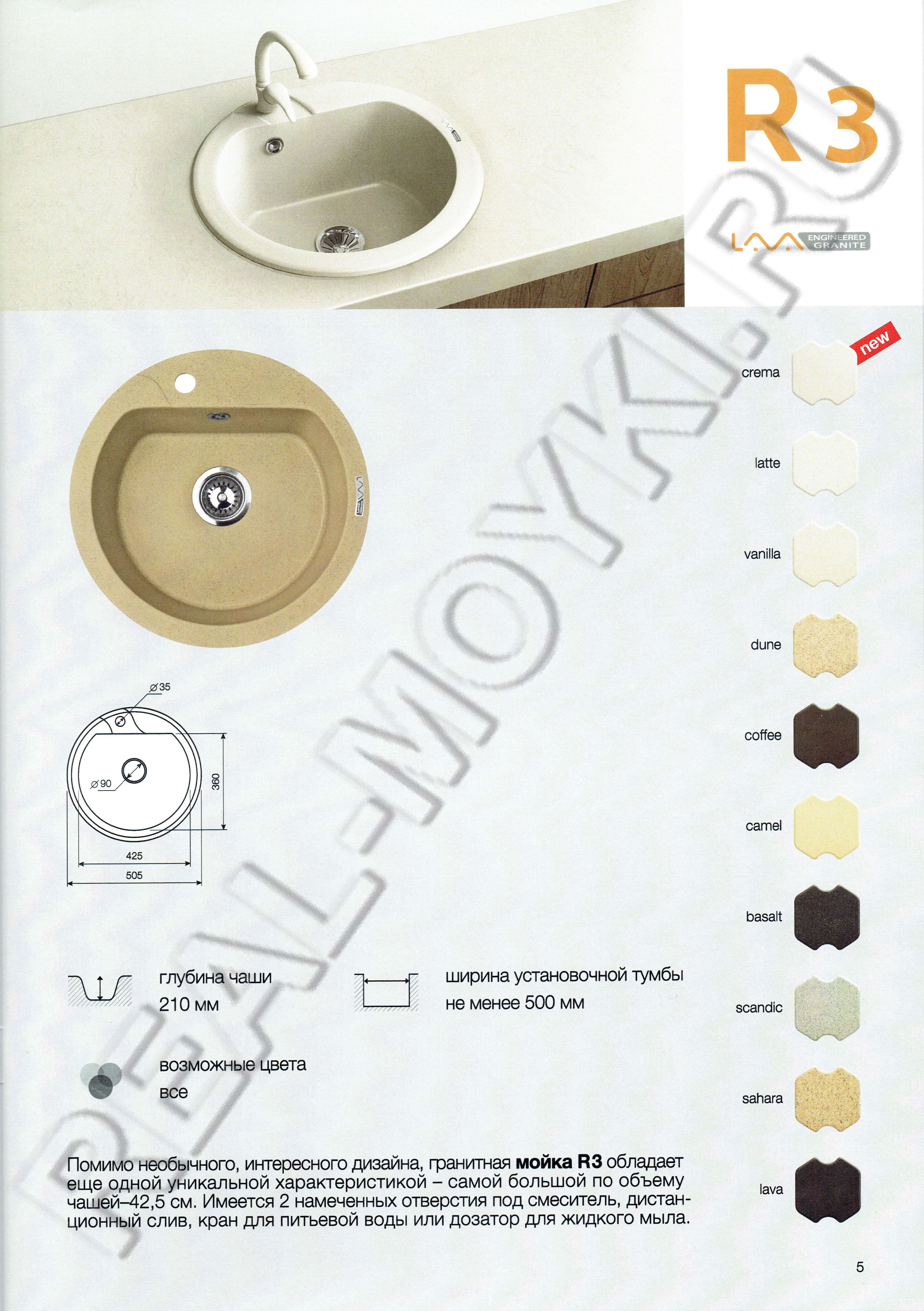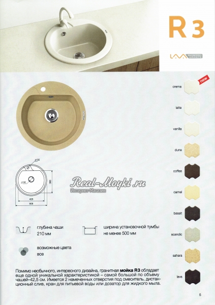 Мойка Lava R3 изготовлена из крепкого материала, который позволяет использовать её на протяжении длительного время. На кухне мойка будет выглядеть постоянно новой, так как производитель очень заботиться о внешнем виде своего товара и использует новые технологии в производстве.