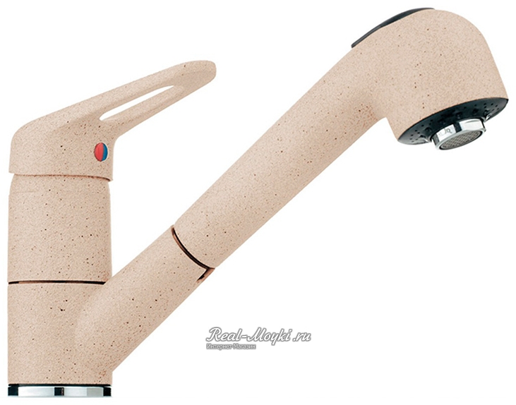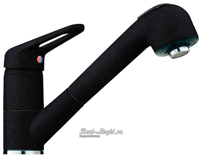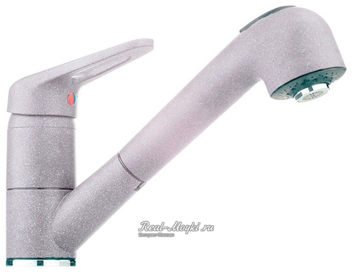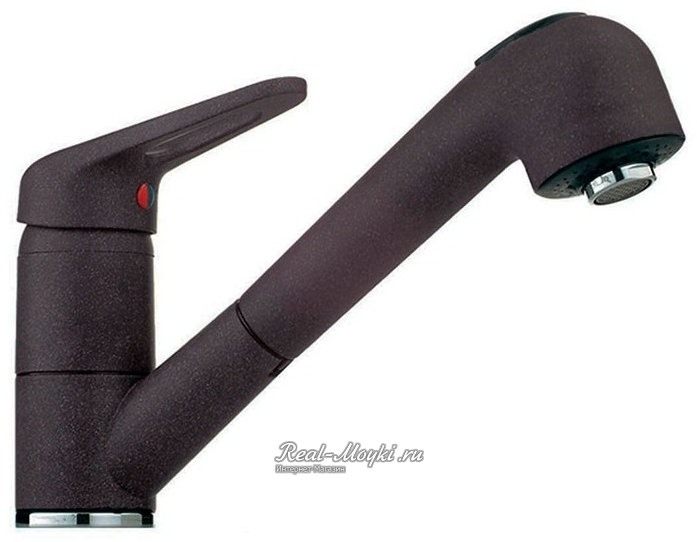 Смесители под гранит: сделаны из латуни с гальваническим цветным покрытием. Поэтому и цветовая гамма такая большая. Визуально смесители с покрытием под гранит не будут отличаться от гранитных моек, главное подобрать цвет. Такие смесители имеют всегда основной цвет и мелкие цветные вкрапления, к примеру, черный металлик – это черный смеситель с металлическими вкраплениями.