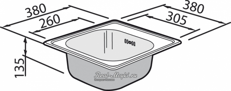 Мойка, которая не оснащена дополнительными рабочими поверхностями - крыльями. Такие модели компактны, идеально подходят для малогабаритных кухонь. В остальном функциональные возможности подобной кухонной мойки ни чем не ограничены, тут также есть донный клапан, перелив, можно использовать различные аксессуары - коландеры, разделочные доски, корзины для посуды и т.д.