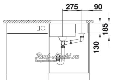 База для встраивания кухонной мойки — это минимально допустимое расстояние между боковыми (левой и правой) стенками кухонного шкафчика (его ширина), куда будет устанавливаться чаша мойки (именно чаша мойки, а не вся мойка).