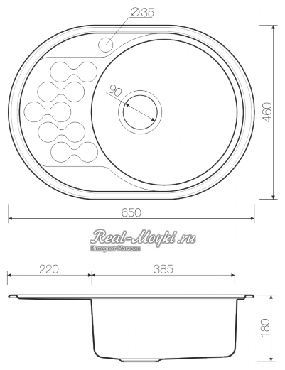 Овальные мойки - разновидность кухонных моек по форме, которая сочетает привлекательность и повышенную функциональность. Такие модели практически также компактны, как и круглые, но часто дополняются вспомогательными элементами, к примеру, крыльями, дополнительным пространством для размораживания или сушки продуктов и т.д. Такие мойки практичны, просты в уходе, но и, как правило, нуждаются в соответствующих по размеру кухонных гарнитурах.
