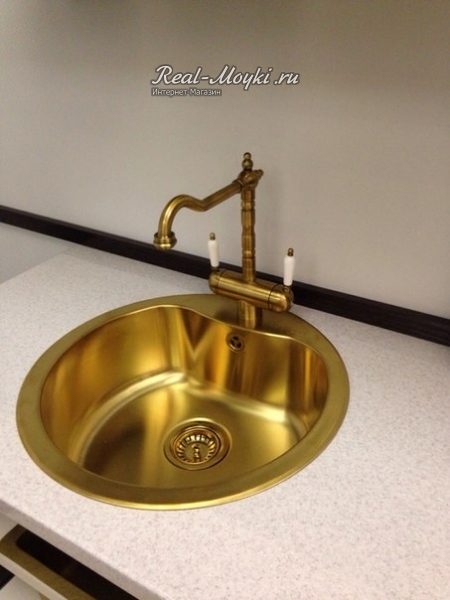 Мойка из нержавейки, которая получает специальное PDV-покрытие. Это особая технология воздействия на металл в вакууме, которая позволяет получить ещё более твердую и прочную поверхность, без нарушения свойств и функциональности исходного материала. Это защитный слой, устойчивый к механическим воздействиям и истираниям. Также PDV-покрытие позволяет преобразить внешний вид мойки, собственно по этому особой популярностью пользуются оформления под медь, золото, серебро, бронзу и графит.