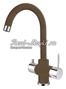 Смесители под гранит: сделаны из латуни с гальваническим цветным покрытием. Поэтому и цветовая гамма такая большая. Визуально смесители с покрытием под гранит не будут отличаться от гранитных моек, главное подобрать цвет. Такие смесители имеют всегда основной цвет и мелкие цветные вкрапления, к примеру, черный металлик – это черный смеситель с металлическими вкраплениями.