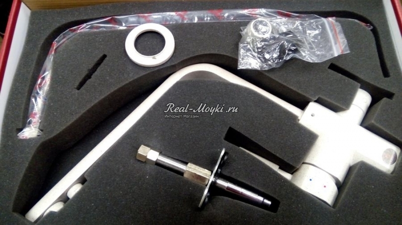 Эта продукция не только достаточно функциональна, но и станет хорошим дополнением для вашей кухни, так как ее безупречный внешний вид и современный дизайн преобразит любое помещение. Изделие без затруднений подключается непосредственно к фильтру, очистительной системе. Сам питьевой кран аккуратно врезается в имеющуюся у вас кухонную мойку. В комплектацию данного дополнительного необходимого элемента (крана) входят важные детали для его установки: уплотнитель, небольших размеров гайка, специальное декоративное кольцо.