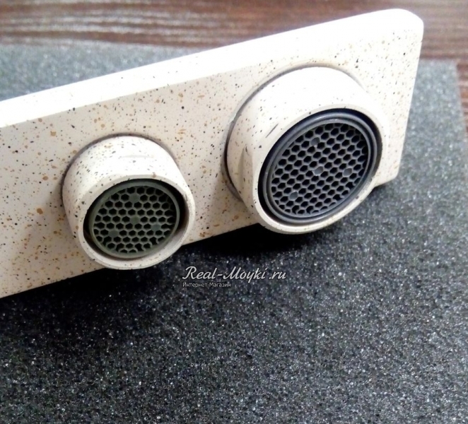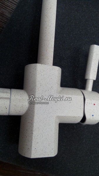 Смесители под гранит: сделаны из латуни с гальваническим цветным покрытием. Поэтому и цветовая гамма такая большая. Визуально смесители с покрытием под гранит не будут отличаться от гранитных моек, главное подобрать цвет. Такие смесители имеют всегда основной цвет и мелкие цветные вкрапления, к примеру, черный металлик – это черный смеситель с металлическими вкраплениями.