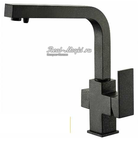 Смесители под гранит: сделаны из латуни с гальваническим цветным покрытием. Поэтому и цветовая гамма такая большая. Визуально смесители с покрытием под гранит не будут отличаться от гранитных моек, главное подобрать цвет. Такие смесители имеют всегда основной цвет и мелкие цветные вкрапления, к примеру, черный металлик – это черный смеситель с металлическими вкраплениями.