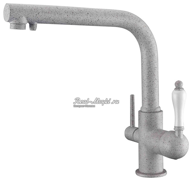 Смесители под гранит: сделаны из латуни с гальваническим цветным покрытием. Поэтому и цветовая гамма такая большая. Визуально смесители с покрытием под гранит не будут отличаться от гранитных моек, главное подобрать цвет. Такие смесители имеют всегда основной цвет и мелкие цветные вкрапления, к примеру, черный металлик – это черный смеситель с металлическими вкраплениями.