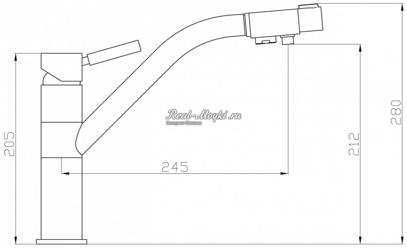 Высота излива это вертикальное расстояние между основанием смесителя и аэратором (рассекателем). При выборе высоты излива важно учитывать, что слишком низкий излив, может затруднять мытье габаритной посуды, а очень высокий излив, может вызывать разбрызгивание воды.