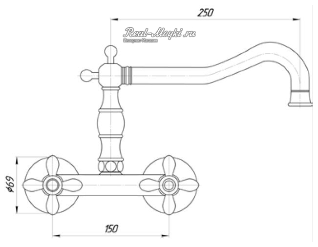 Двухвентильный смеситель оснащен двумя вентилями, по отдельности отвечающими, соответственно, за подачу горячей и холодной воды.