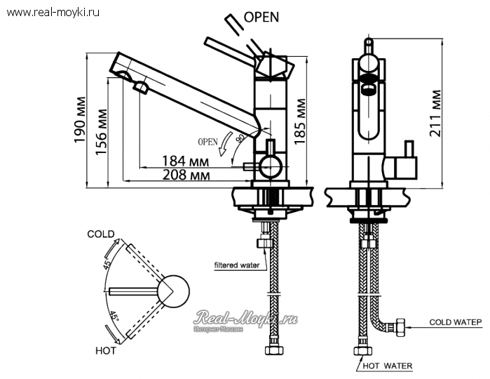 Однорычажный смеситель оснащен одной рукояткой, поворачивающейся вверх-вниз и вправо-влево. Благодаря этому можно одним движением руки настроить температуру воды и силу напора, что и обеспечивает дополнительное удобство и простоту при работе на кухне.