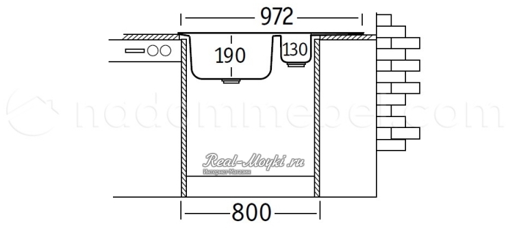 База для встраивания кухонной мойки — это минимально допустимое расстояние между боковыми (левой и правой) стенками кухонного шкафчика (его ширина), куда будет устанавливаться чаша мойки (именно чаша мойки, а не вся мойка).