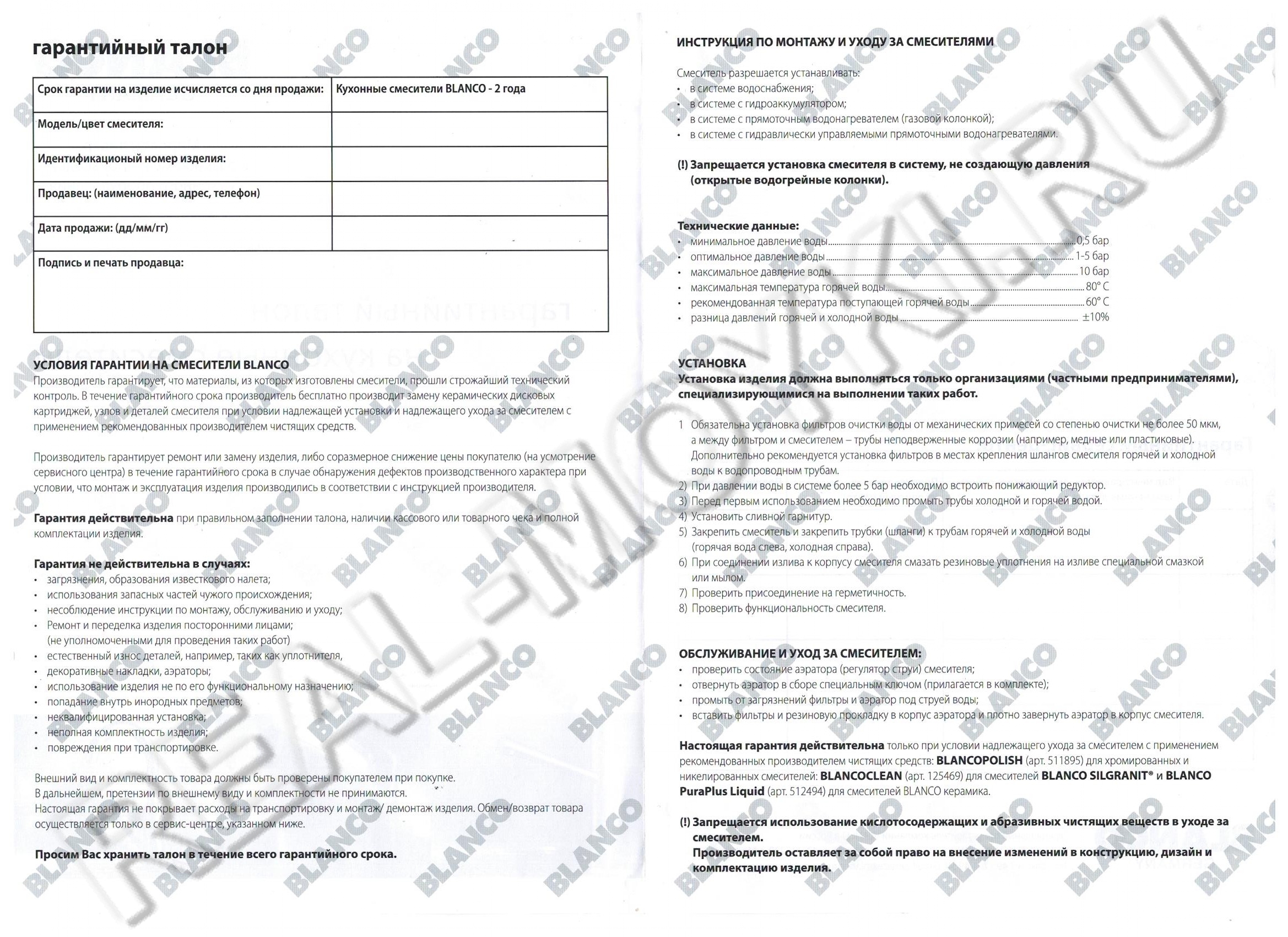 | Бренд (Штаб-квартира) | Blanco (Германия) |