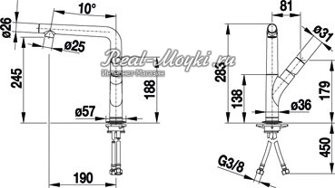 Высота излива это вертикальное расстояние между основанием смесителя и аэратором (рассекателем). При выборе высоты излива важно учитывать, что слишком низкий излив, может затруднять мытье габаритной посуды, а очень высокий излив, может вызывать разбрызгивание воды.