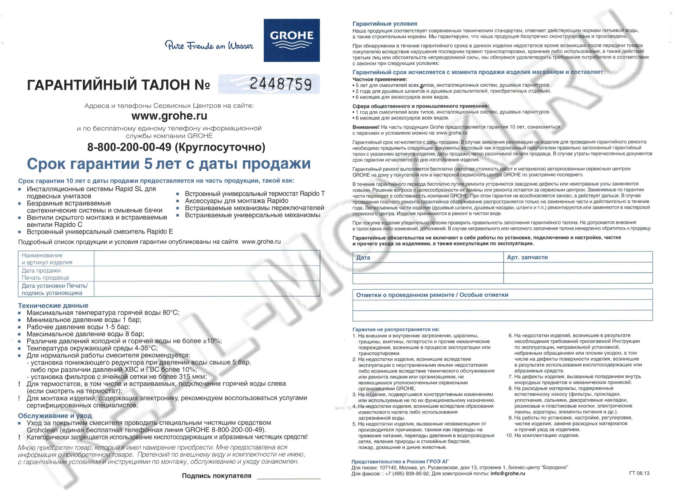 | Бренд (Штаб-квартира) | Grohe (Германия) |