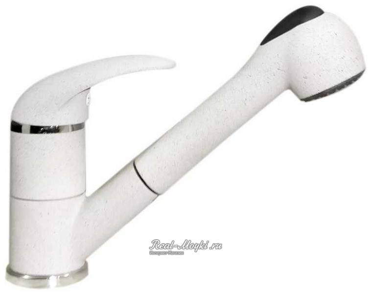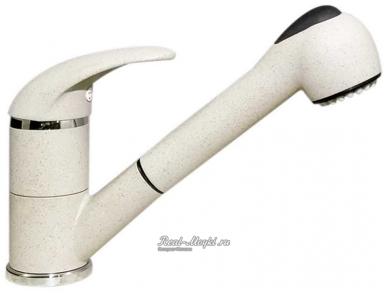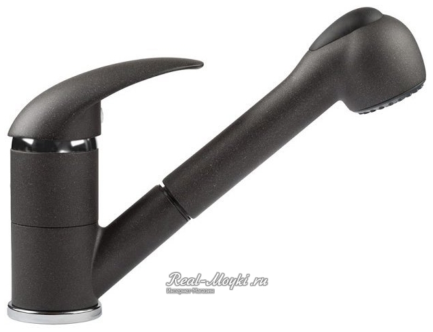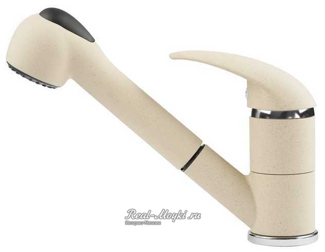 Смесители под гранит: сделаны из латуни с гальваническим цветным покрытием. Поэтому и цветовая гамма такая большая. Визуально смесители с покрытием под гранит не будут отличаться от гранитных моек, главное подобрать цвет. Такие смесители имеют всегда основной цвет и мелкие цветные вкрапления, к примеру, черный металлик – это черный смеситель с металлическими вкраплениями.