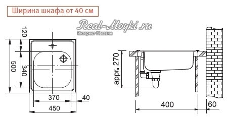 База для встраивания кухонной мойки — в этом параметре указывается минимальный размер шкафа, куда будет устанавливаться мойка. Ширина базы/шкафа может быть меньше ширины мойки, так как крыло мойки может заходить на соседний предмет.