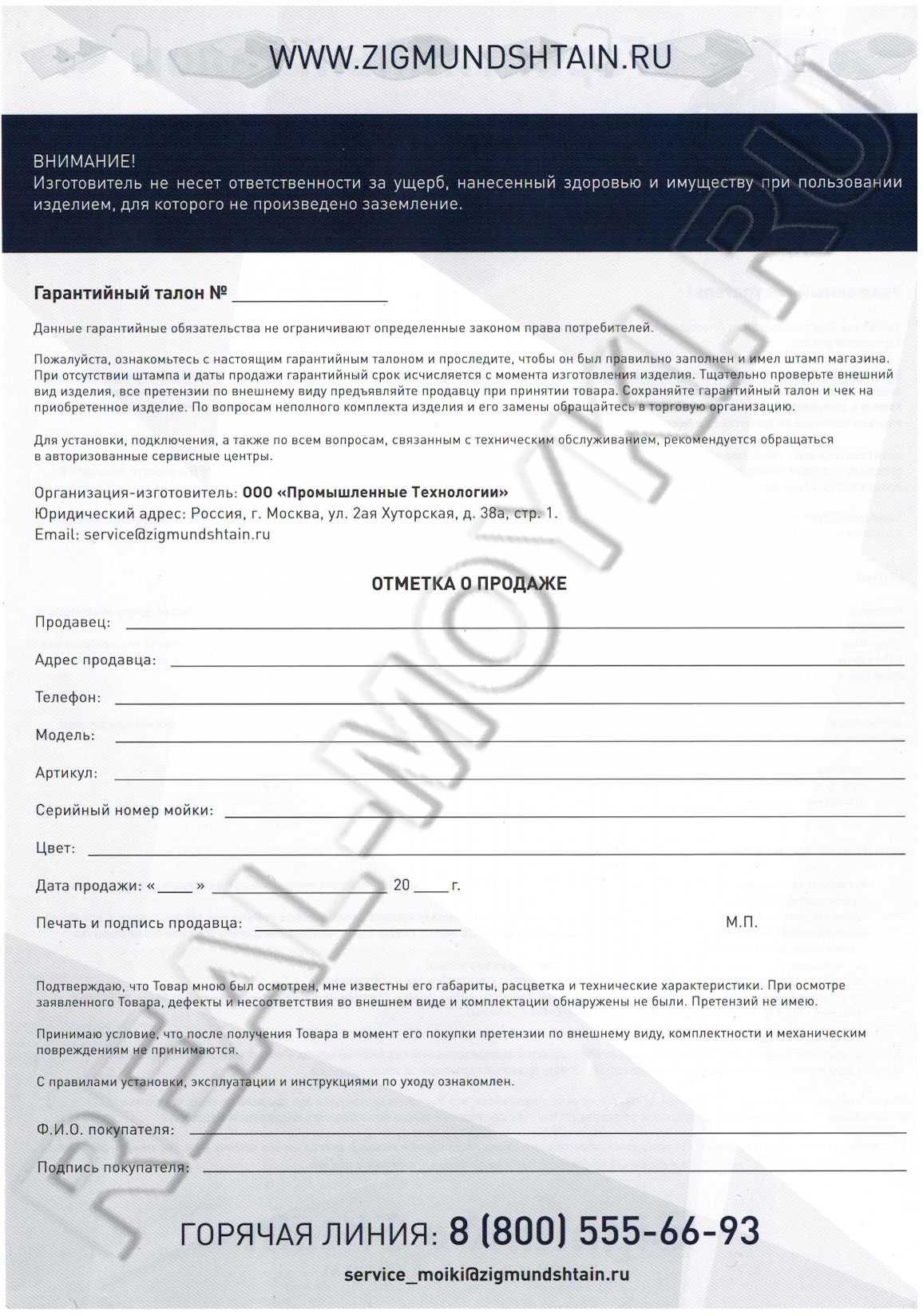 | Бренд (Штаб-квартира) | Zigmund Shtain (Германия) |