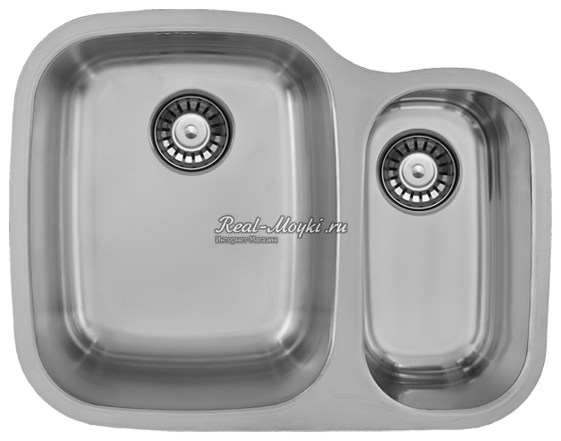 Оригинальная двойная мойка, которая позволяет сочетать повышенную функциональность с компактными размерами. Одна основная чаша тут имеет крупные размеры. Она предназначена для мытья посуды и других стандартных операций. Вторая чаша довольно компактна, часто - ещё и меньше по глубине. В ней можно сушить столовые приборы и посуду, размораживать полуфабрикаты и т.д. Некоторые модели несмотря на расширенную функциональность по размерам лишь немногим превосходят одночашевые вариации, что делает такие мойки отличным решением для мало- и средне габаритных кухонь.