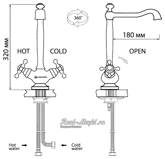 Двухвентильный кухонный смеситель Омойкири Кагошима-к ретро в интернет магазине www Real-Moyki ru по лучшей цене вы можете, значительным образом преобразив ваше уютное кухонное пространство.