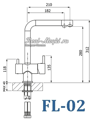 Смеситель для кухни FL-02 этого типа славится не только своей надежностью и практичностью в использовании, но и является безопасным для человеческого здоровья. Кран можно подключить непосредственно к очистительной системе, это позвонит вам значительно сэкономить пространство вашей мойки на кухне. В базовую комплектацию данного товара входит несколько нужных для установки крана элементов, к ним относится: небольших размеров гайка, декоративное кольцо и уплотнитель.