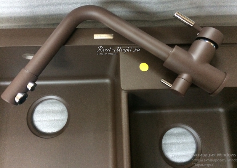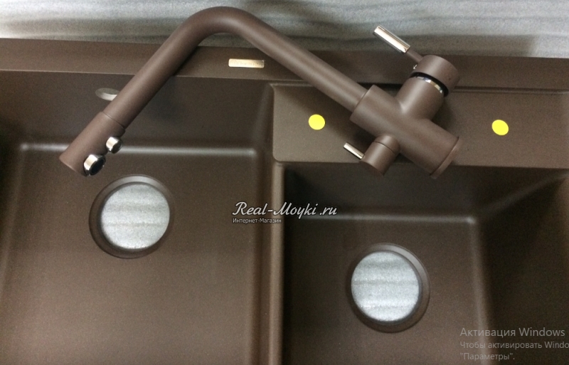 Такие смесители оснащены двумя изливами или же одним изливом, но с двумя каналами. Такие модели имеют специальный переключатель, позволяющий выбирать вариант подачи воды - напрямую из водопровода или через фильтр очистки.