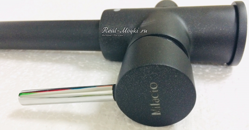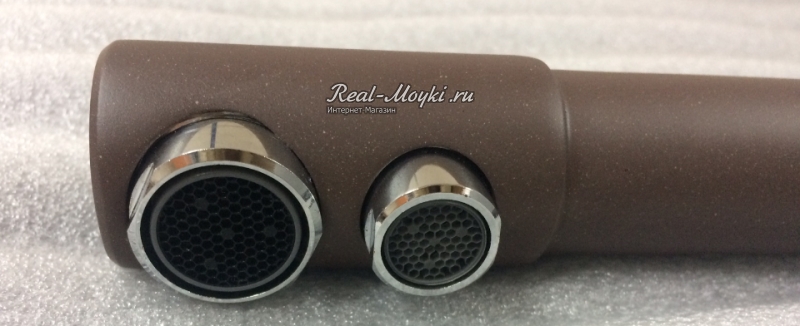 Смесители под гранит: сделаны из латуни с гальваническим цветным покрытием. Поэтому и цветовая гамма такая большая. Визуально смесители с покрытием под гранит не будут отличаться от гранитных моек, главное подобрать цвет. Такие смесители имеют всегда основной цвет и мелкие цветные вкрапления, к примеру, черный металлик – это черный смеситель с металлическими вкраплениями.