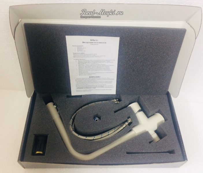 Эта продукция не только достаточно функциональна, но и станет хорошим дополнением для вашей кухни, так как ее безупречный внешний вид и современный дизайн преобразит любое помещение. Изделие без затруднений подключается непосредственно к фильтру, очистительной системе. Сам питьевой кран аккуратно врезается в имеющуюся у вас кухонную мойку. В комплектацию данного дополнительного необходимого элемента (крана) входят важные детали для его установки: уплотнитель, небольших размеров гайка, специальное декоративное кольцо.