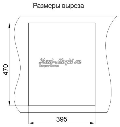 Внешний размер мойки - 800х500 мм. Размер отверстия под данную мойку - 780х480 мм.