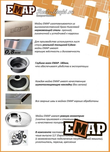 Купить квадратную кухонную мойку Emar 130 A в интернет магазине www Real-Moyki ru по лучшей цене можно тогда, когда вы сами этого захотите и проявите свое активное стремления для приобретения ценного спутника в домашних делах.