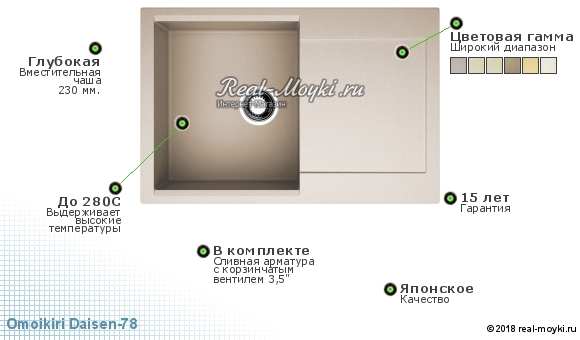 Купить прямоугольную кухонную мойку Омойкири Дейсен 78 в интернет магазине www Real-Moyki ru по лучшей цене вы можете прямо сейчас, ведь такая уникальная покупка подарит огромное количество доброты, а самое главное практичности и пользы на кухне.