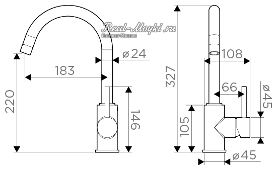 Высота излива это вертикальное расстояние между основанием смесителя и аэратором (рассекателем). При выборе высоты излива важно учитывать, что слишком низкий излив, может затруднять мытье габаритной посуды, а очень высокий излив, может вызывать разбрызгивание воды.