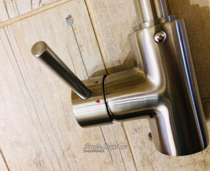 Однорычажный смеситель оснащен одной рукояткой, поворачивающейся вверх-вниз и вправо-влево. Благодаря этому можно одним движением руки настроить температуру воды и силу напора, что и обеспечивает дополнительное удобство и простоту при работе на кухне.