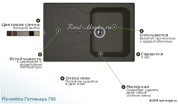 Сильные стороны мойки для кухни Флорентина Гаттинара-780: