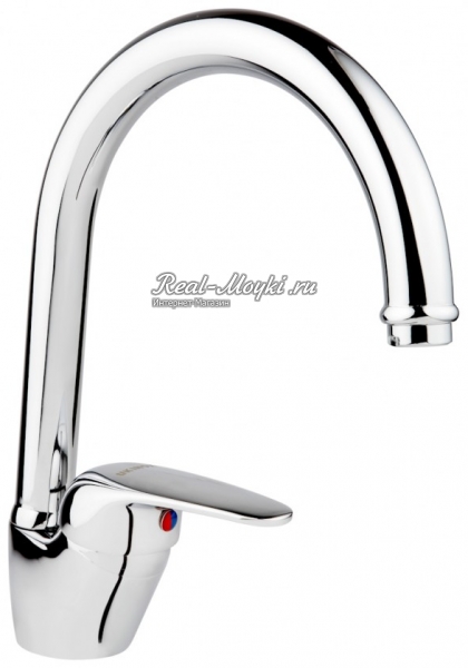 Однорычажный смеситель оснащен одной рукояткой, поворачивающейся вверх-вниз и вправо-влево. Благодаря этому можно одним движением руки настроить температуру воды и силу напора, что и обеспечивает дополнительное удобство и простоту при работе на кухне.