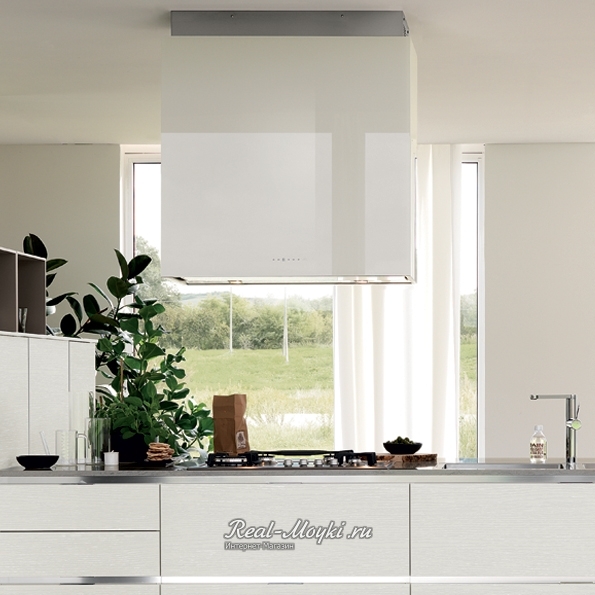 Стоит отметить один яркий аспект этого товара: он отлично подойдет кухонному пространству больших, значительных размеров, благодаря своеобразию своего месторасположения. Его размещают, примерно, в центре комнаты. Это очень удобно, ведь в этом варианте поток чистого воздуха будет активно циркулировать по всей площади, это обеспечит высокую эффективность процесса работы.