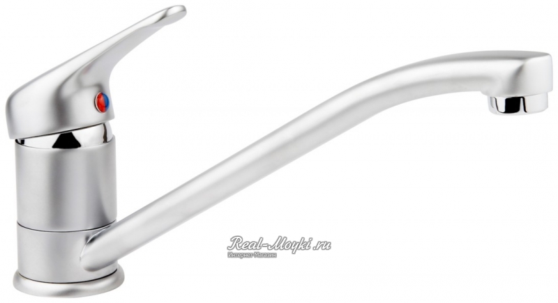 Однорычажный смеситель оснащен одной рукояткой, поворачивающейся вверх-вниз и вправо-влево. Благодаря этому можно одним движением руки настроить температуру воды и силу напора, что и обеспечивает дополнительное удобство и простоту при работе на кухне.