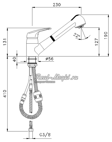 Высота излива это вертикальное расстояние между основанием смесителя и аэратором (рассекателем). При выборе высоты излива важно учитывать, что слишком низкий излив, может затруднять мытье габаритной посуды, а очень высокий излив, может вызывать разбрызгивание воды.