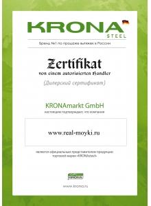 Наличие сертификата Krona – это обязательное условие продажи изделий данного производителя для всех сертифицированных продавцов и официальных сайтов по продаже продукции Krona. Мы – сертифицированный продавец Krona в России, поэтому, можем полностью удовлетворять политике бренда при продаже его товаров – обеспечивать каждому покупателю цены от производителя и длительную официальную гарантию на все товары Krona.