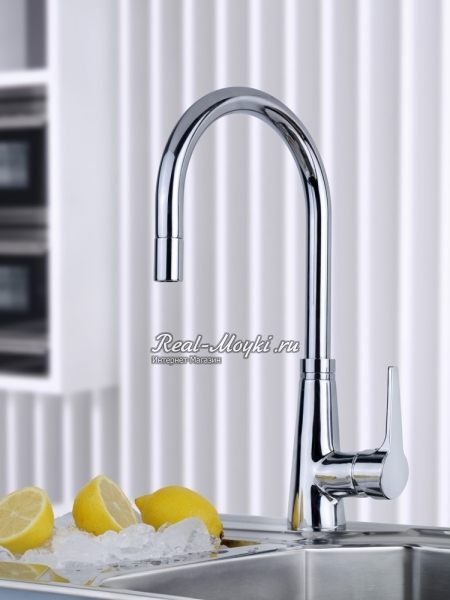 Высокий излив располагается на высоте от 17 и более см над рабочей поверхностью. Такие смесители увеличивают полезное пространство чаши и обеспечивают максимальный комфорт в эксплуатации. Могут вызывать разбрызгивание воды, поэтому нужно грамотно сочетать их с достаточно глубокими мойками.