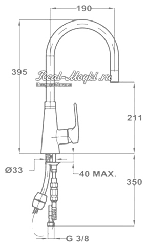Однорычажный смеситель оснащен одной рукояткой, поворачивающейся вверх-вниз и вправо-влево. Благодаря этому можно одним движением руки настроить температуру воды и силу напора, что и обеспечивает дополнительное удобство и простоту при работе на кухне.
